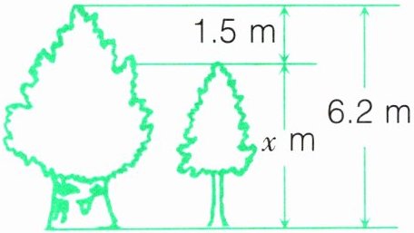 $x + 1.5 = 6.2$,$x = 4.7$@@$4x = 100 - 36$,$x = 16$