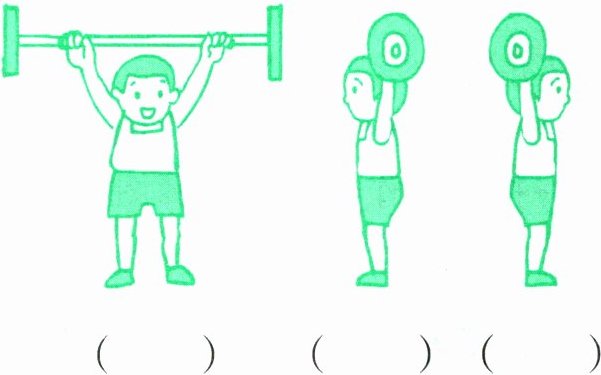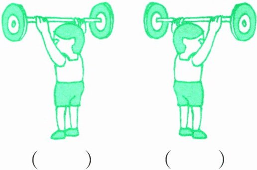 3. 下图是举重运动员举起杠铃的瞬间。请你标出拍摄者分别是在哪个方向拍摄的。