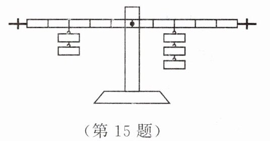 15. 如图所示,杠杆处于平衡状态。如果在支点两侧的钩码下方分别再挂一个等重的钩码后,杠杆________(填“能”或“不能”)继续保持平衡。