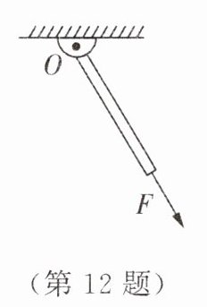 12. 如图所示,一根硬棒长 $1\ m$,能够绕 $O$ 点转动。力 $F$ 作用在硬棒上,则 $F$ 的力臂长为________$m$,这是因为____________________。