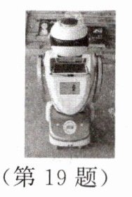 19. 如图所示的为一款新型机器人,该机器人内置智能系统,质量为50 kg,与水平地面的接触面积为 200 cm²,匀速运动时所受阻力为重力的 0.1 倍。求:(g 取 10 N/kg)