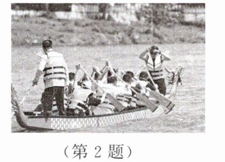 2.赛龙舟是端午节重要的习俗之一,如图所示,参赛队员一只手支撑在桨柄的末端(视为支点),另一只手用力划桨,此时的船桨属于________杠杆;为了省力,队员们可将用力划桨的手________(填“远离”或“靠近”)支点。