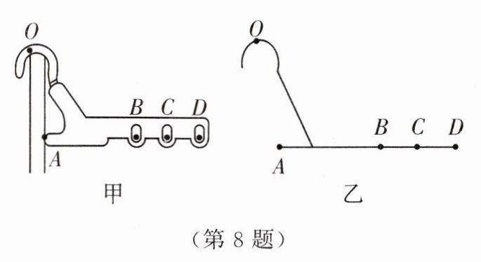 8. 图甲所示的晾晒架在挂衣服时可看成杠杆,图乙为其简化示意图。