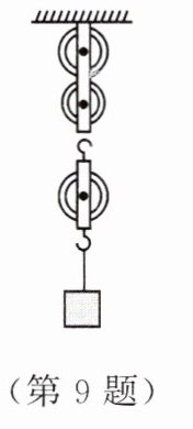 9. 一个工人站在地面上,使用如图所示的滑轮组将重物从地面提升到楼顶,请用笔画线代替绳子,画出工人使用滑轮组提升重物最省力的绕绳方式。