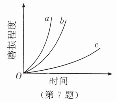 (3)如图所示的是纳米陶瓷刀、合金钢刀、普通菜刀磨损程度随时间变化的曲线(相同使用条件下),其中反映纳米陶瓷刀磨损特点的是曲线_______(填字母)。