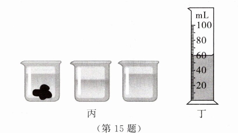 b. 先在量筒中装入$80mL$的水,然后将量筒中的水缓慢倒入烧杯中,使水面到达标记处,量筒中剩余的水的体积如图丁所示,则小石块的体积为_____$cm^{3}$。