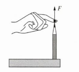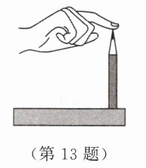 13. 如图所示,用手指压竖直放置在水平桌面上的铅笔的笔尖,请画出铅笔尖对手指弹力的示意图。