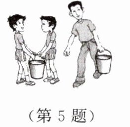 5. 如图所示,两个孩子能提起一桶水,大人能提起同一桶水。由此可知,大人作用的力产生的效果与两个孩子共同作用的力产生的效果_______,大人作用的力等于两个孩子作用力的_______。
