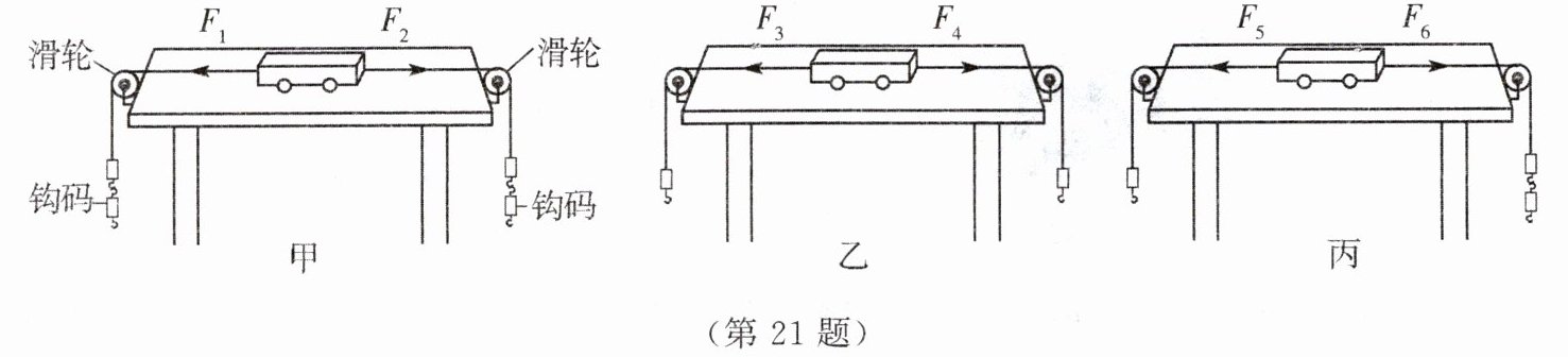 21. 实验小组要探究二力平衡的条件。实验中每个钩码的重力相同,摩擦力忽略不计。