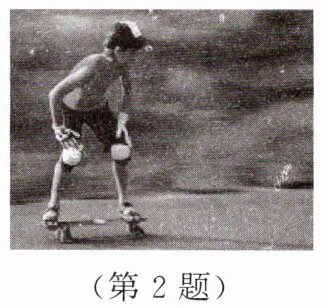 2. 如图所示,小明同学热爱滑板运动。下列是他在水平地面上玩滑板的过程中,对几个力学问题的思考,其中正确的是 ( )