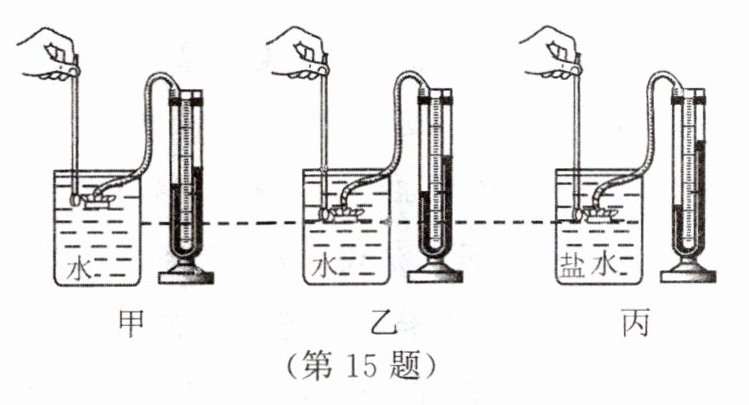 15. 在探究液体压强与哪些因素有关的实验中,同学们进行了如图所示的操作:
