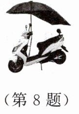 8. 有些电动车安装了如图所示的特制伞来遮阳挡雨,它给人们带来方便的同时也带来了安全隐患。这样的电动车以较快速度行驶时有“向上飘”的感觉,下列关于这一现象的解释正确的是 ( )