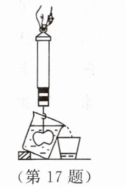 17. 如图所示,用弹簧测力计悬挂着物体,使该物体在水中静止。请画出此时物体受到的力的示意图。