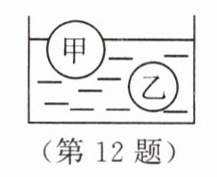 12. 如图所示,质量相等的甲、乙两球一个漂浮在水面上,一个悬浮在水中。下列说法正确的是 ( )