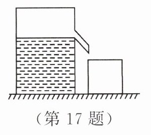 17. 如图所示,当溢水杯盛满某种液体时,把实心物块缓慢放入杯中,物块漂浮,静止后溢出液体的质量为$m_{1}$;当溢水杯盛满密度为$\rho$的液体时,把同一物块缓慢放入杯中,物块沉底,静止后溢出液体的质量为$m_{2}$。则物块的密度为________。