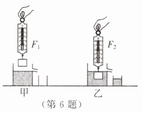 D. 小烧杯中水的重力$G=F_{1}-F_{2}$ (第 6 题)