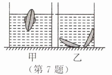 D. 两吸盘在甲容器中所受的浮力大于在乙容器中所受的浮力 (第 7 题)