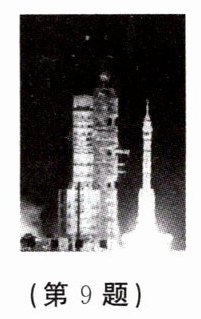 9. 如图所示的是搭载神舟十九号载人飞船的长征二号F遥十九运载火箭点火发射时的情景。在火箭加速上升过程中,燃料燃烧释放的内能转化为火箭的__________能。神舟十九号载人飞船与核心舱通过__________(填“超声波”或“电磁波”)进行联系,自主完成对接。