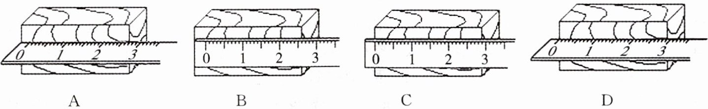 2. 用刻度尺测量一个长方体的长度,图中正确的是 ( )