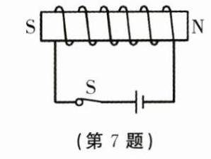 7. 如图所示,在图中标出闭合开关时通电螺线管的N、S极。