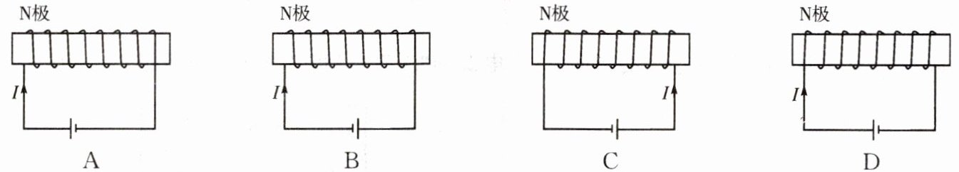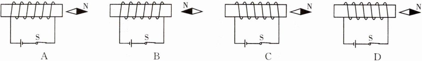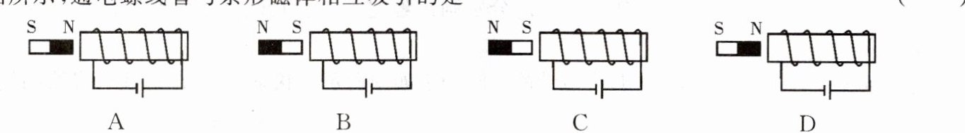 4. 如图所示,通电螺线管与条形磁体相互吸引的是 ( )