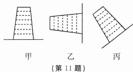 11.将杯子里装满水,用纸片把杯口盖严,按住纸片,把杯子倒过来,放手后,纸片不会掉下来,杯子里的水也不会流出来(如图甲所示),这表明____________。把杯子放于如图乙、丙所示位置,纸片都不会掉下来,这说明__________________________。
