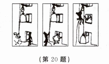20.如图所示的是一幅科学漫画。画中所用机械________(填“能”或“不能”)省力,若胖人、瘦人、袋子的重力分别是G₁、G₂、G₃,则它们之间的大小关系是________________。