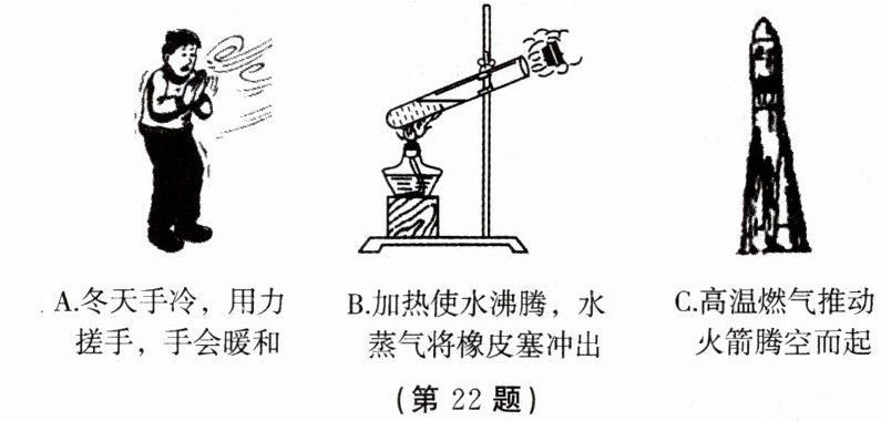22. 下图反映了哪些共同的物理知识?写出其中两个。
