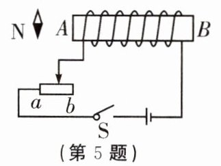 5.在“探究电磁铁的磁性强弱与哪些因素有关”的实验中,小聪连接了如图所示的电路,电磁铁A端放有一小磁针,闭合开关,小磁针______(填“顺”或“逆”)时针转动,向右移动滑动变阻器的滑片,电磁铁磁性______(填“增强”、“减弱”或“不变”)。电磁铁磁性的强弱还与______有关。