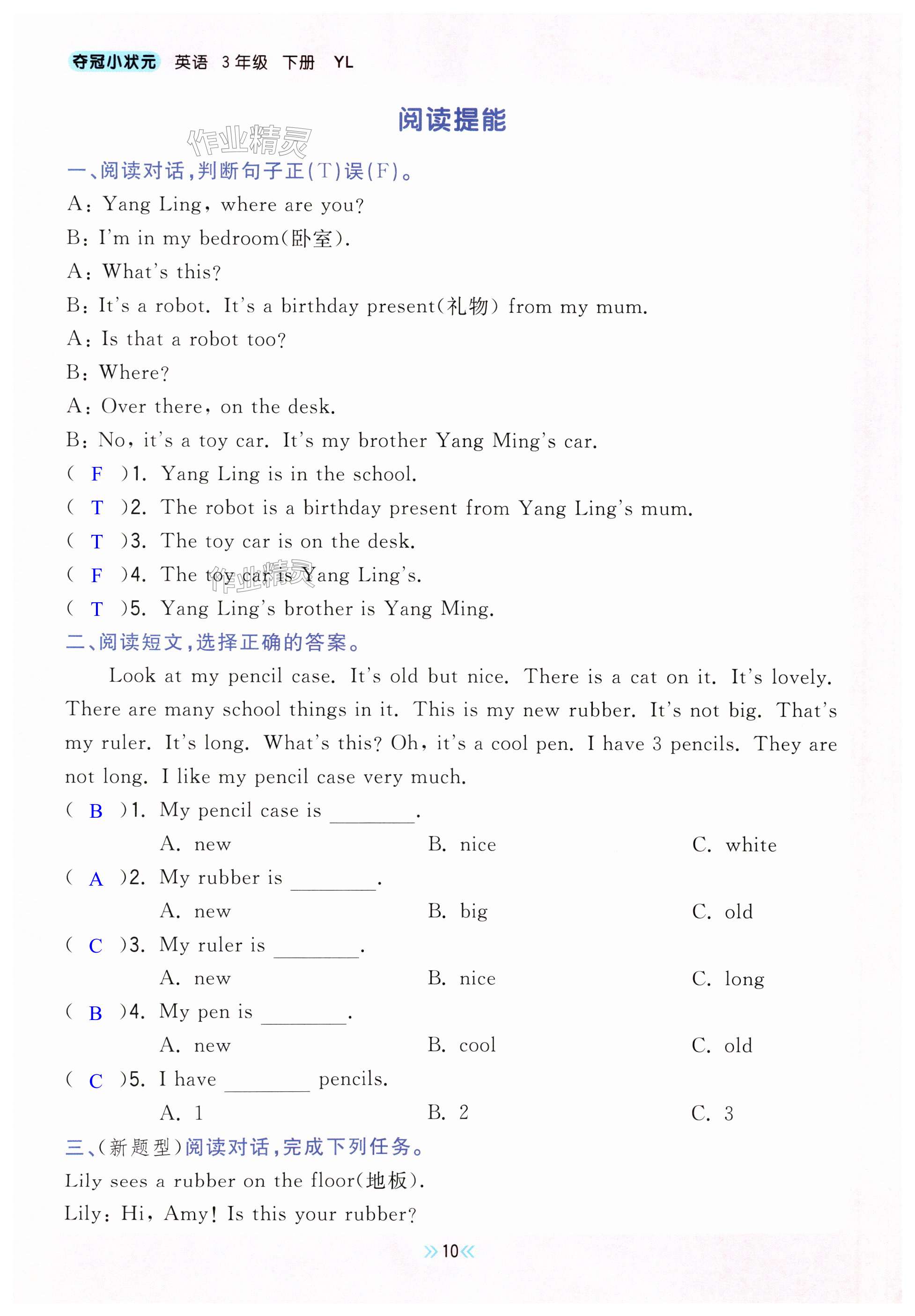 注:目前有些书本章节名称可能整理的还不是很完善,但都是按照顺序排列的,请同学们按照顺序仔细查找。练习册 2025年夺冠小状元课时作业本三年级英语下册译林版 答案主要是用来给同学们做完题方便对答案用的,请勿直接抄袭。
