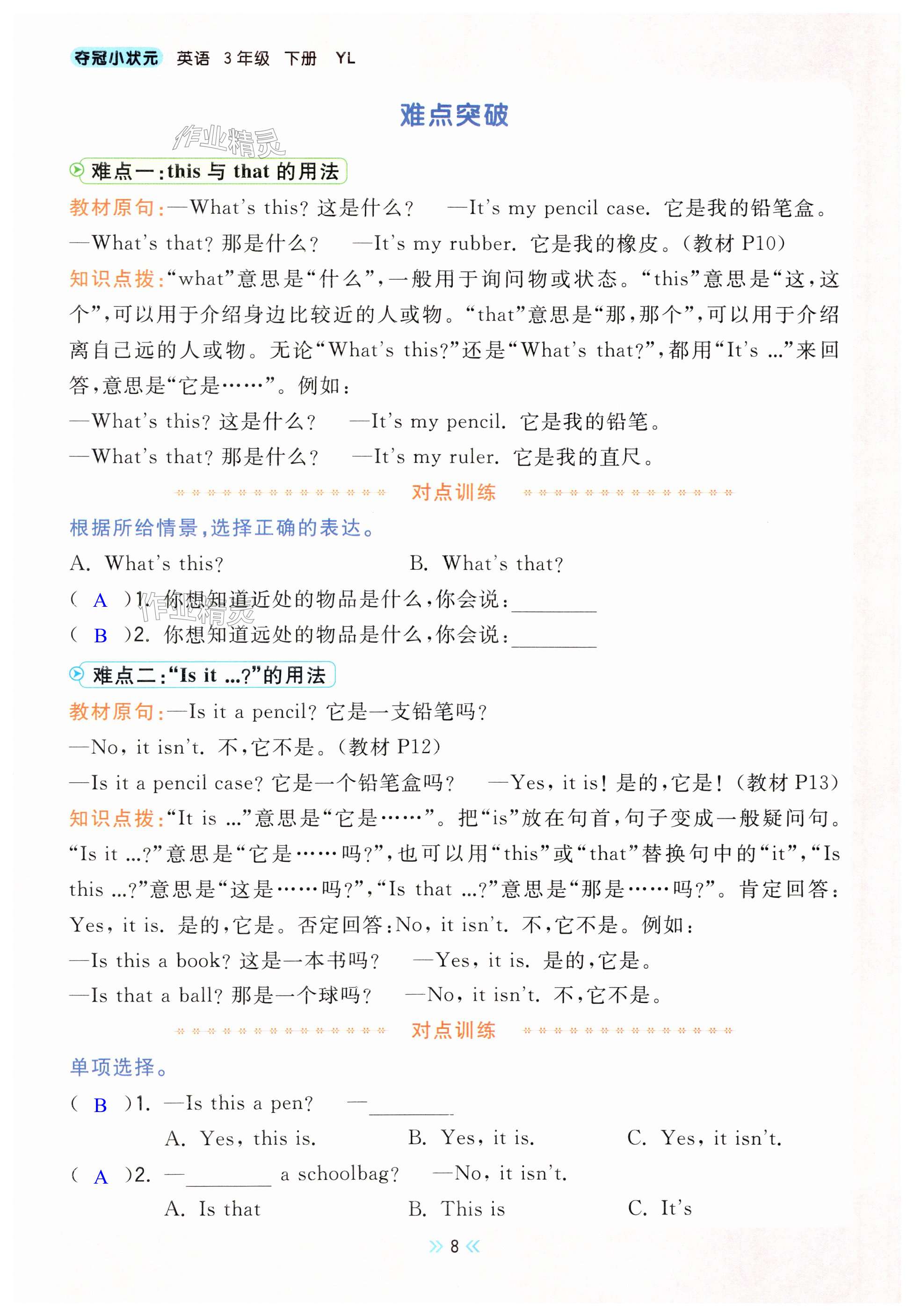 注:目前有些书本章节名称可能整理的还不是很完善,但都是按照顺序排列的,请同学们按照顺序仔细查找。练习册 2025年夺冠小状元课时作业本三年级英语下册译林版 答案主要是用来给同学们做完题方便对答案用的,请勿直接抄袭。