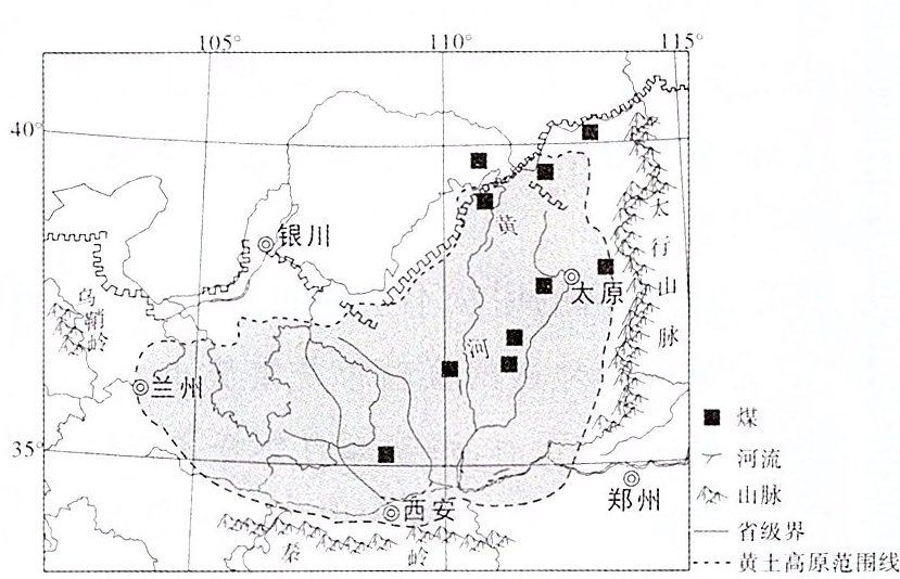 黄土高原是我国重要的能源基地,被称为“乌金高原”,该能源在开发利用中,对生态环境产生了极大的破坏,导致水土流失日益加剧。读图,回答7~8题。