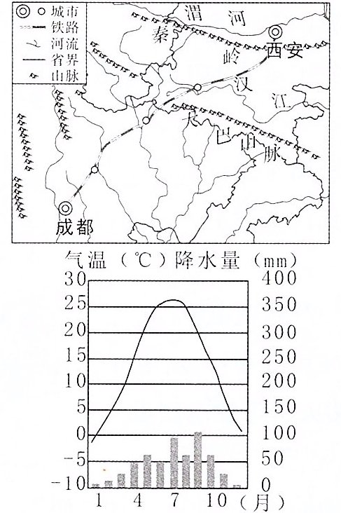 12. 下图是西成(西安—成都)高铁及某城市气候资料图。读图,完成下列问题。