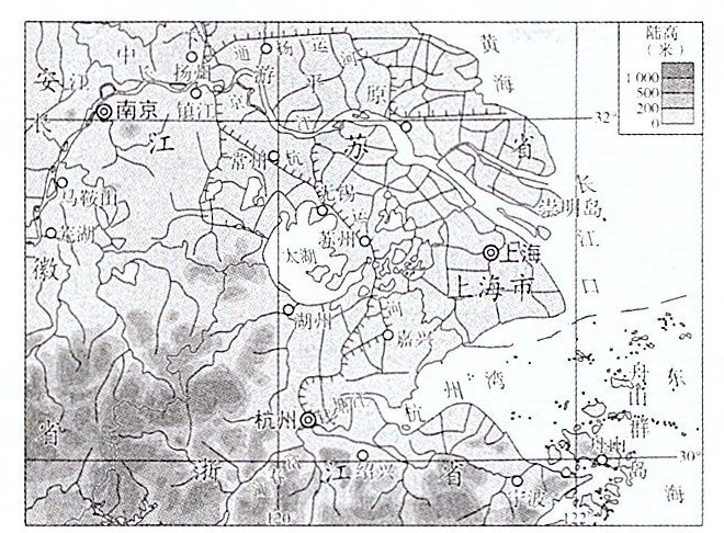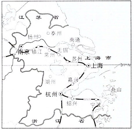 长江三角洲是中国经济发展活跃、开放程度高的区域之一。下图为长江三角洲示意图。读图,完成3~5题。