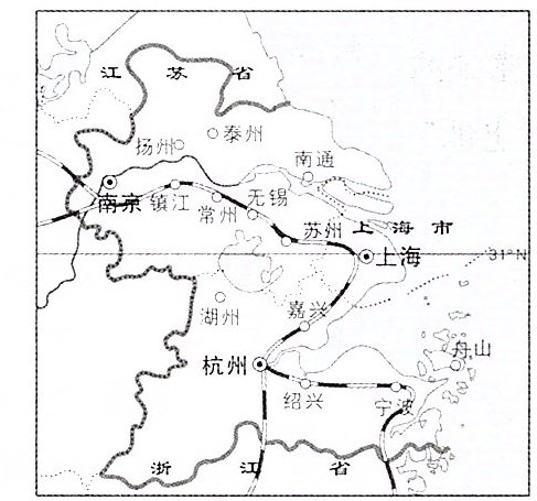 13. 读长江三角洲地区图,回答下列问题。