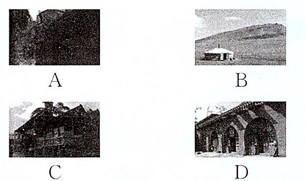 9. 下列图片所示的传统民居中属于西双版纳地区的是 ( )