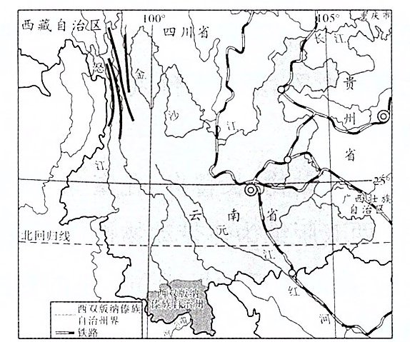 10. 下图为西双版纳位置示意图。读图,完成下列问题。