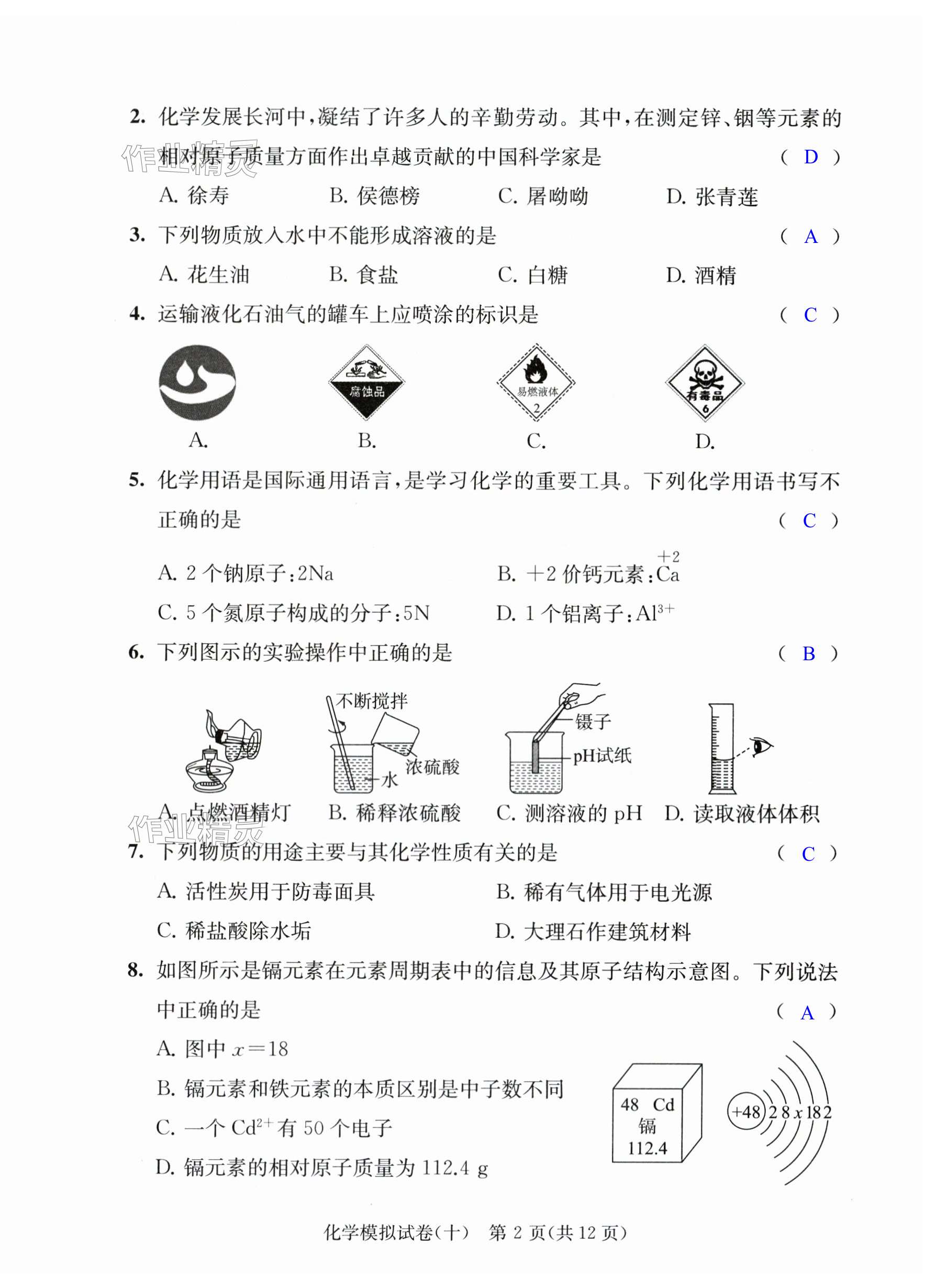 注:目前有些书本章节名称可能整理的还不是很完善,但都是按照顺序排列的,请同学们按照顺序仔细查找。练习册 2025年绿色成长互动空间决胜中考模拟卷化学 答案主要是用来给同学们做完题方便对答案用的,请勿直接抄袭。