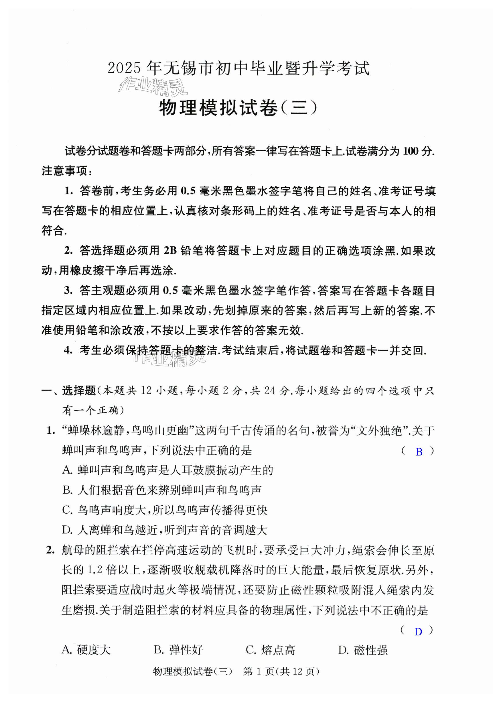 注:目前有些书本章节名称可能整理的还不是很完善,但都是按照顺序排列的,请同学们按照顺序仔细查找。练习册 2025年绿色成长互动空间决胜中考模拟卷物理 答案主要是用来给同学们做完题方便对答案用的,请勿直接抄袭。
