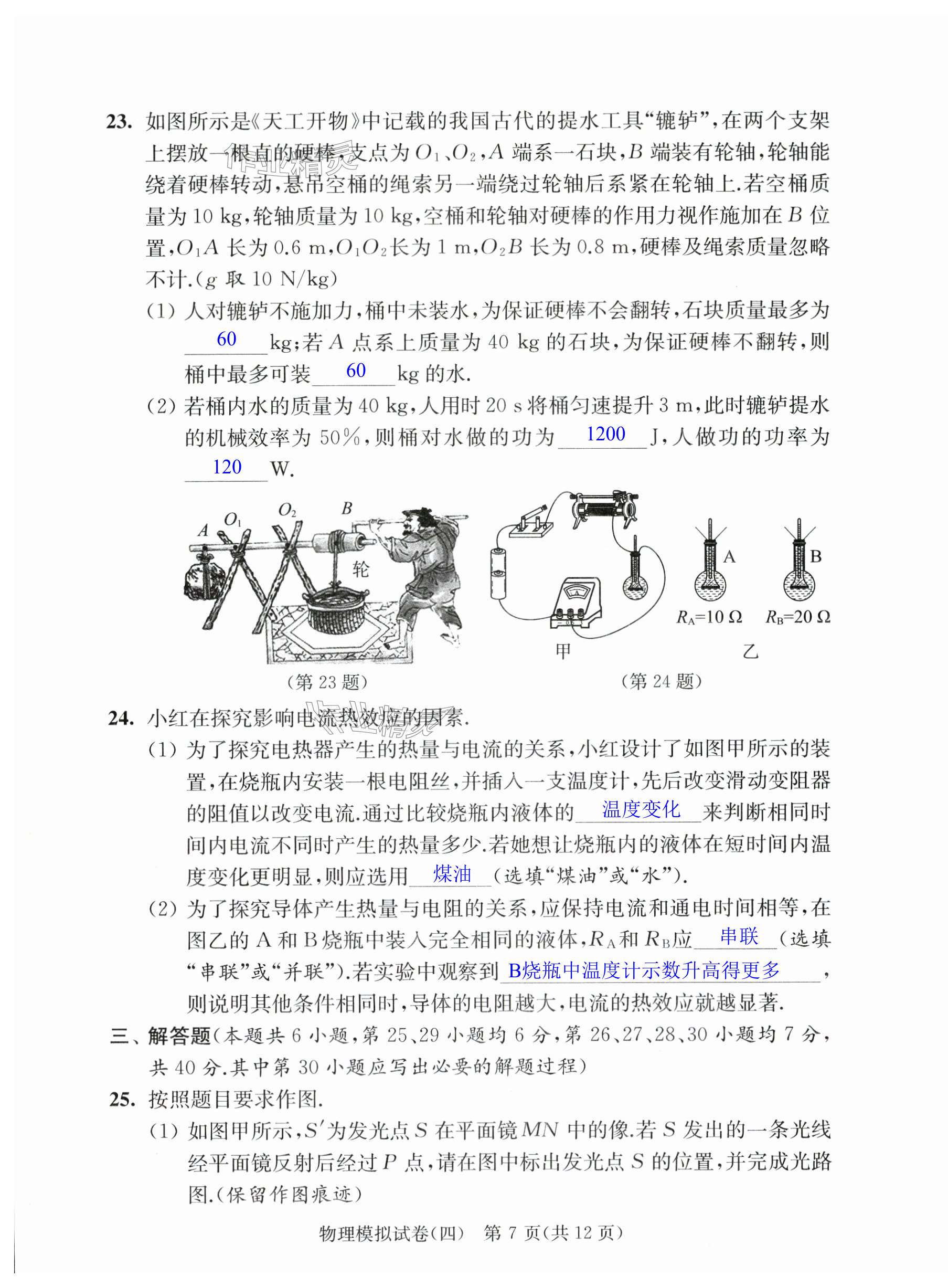 注:目前有些书本章节名称可能整理的还不是很完善,但都是按照顺序排列的,请同学们按照顺序仔细查找。练习册 2025年绿色成长互动空间决胜中考模拟卷物理 答案主要是用来给同学们做完题方便对答案用的,请勿直接抄袭。