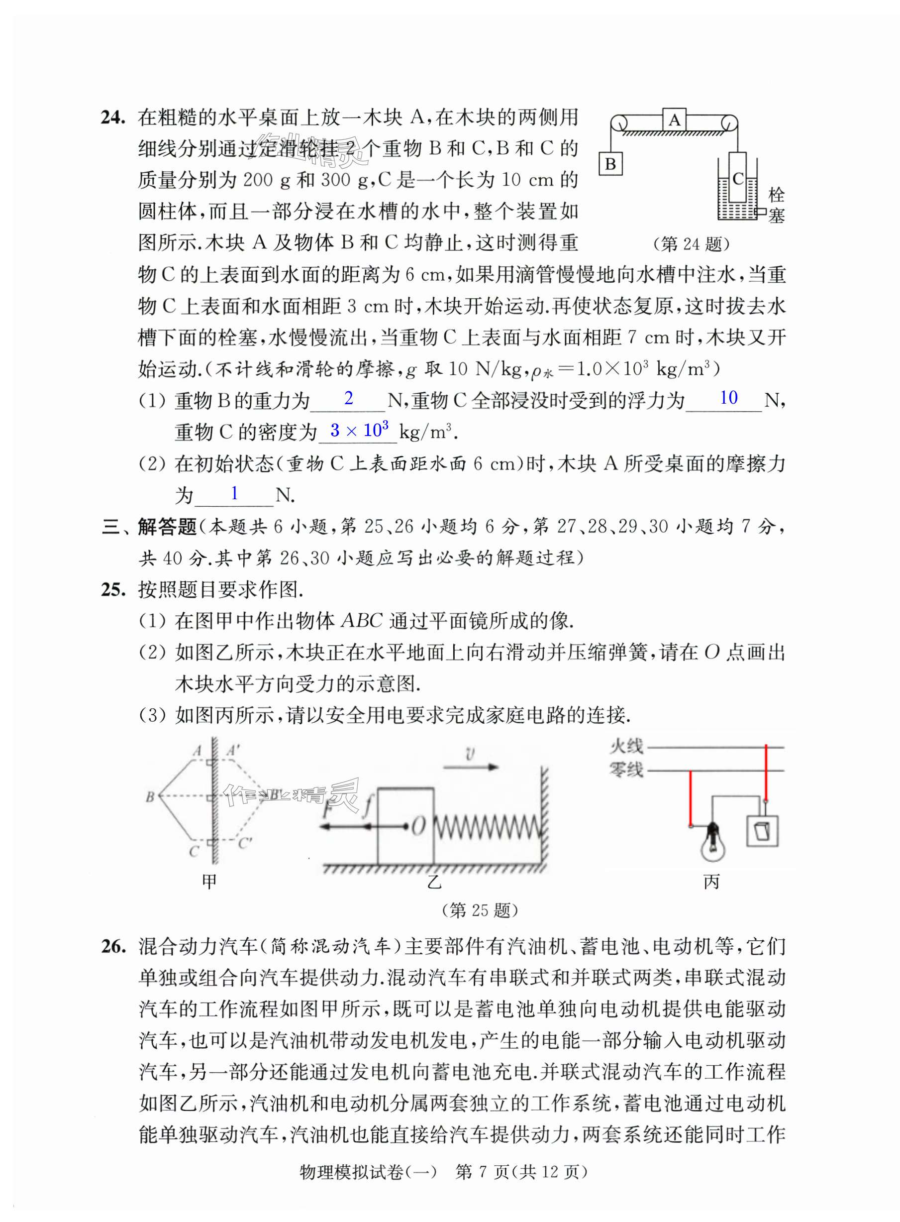 注:目前有些书本章节名称可能整理的还不是很完善,但都是按照顺序排列的,请同学们按照顺序仔细查找。练习册 2025年绿色成长互动空间决胜中考模拟卷物理 答案主要是用来给同学们做完题方便对答案用的,请勿直接抄袭。