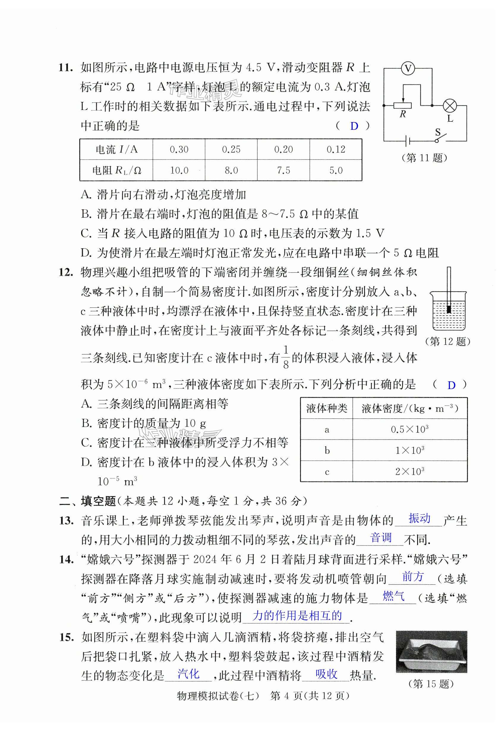 注:目前有些书本章节名称可能整理的还不是很完善,但都是按照顺序排列的,请同学们按照顺序仔细查找。练习册 2025年绿色成长互动空间决胜中考模拟卷物理 答案主要是用来给同学们做完题方便对答案用的,请勿直接抄袭。