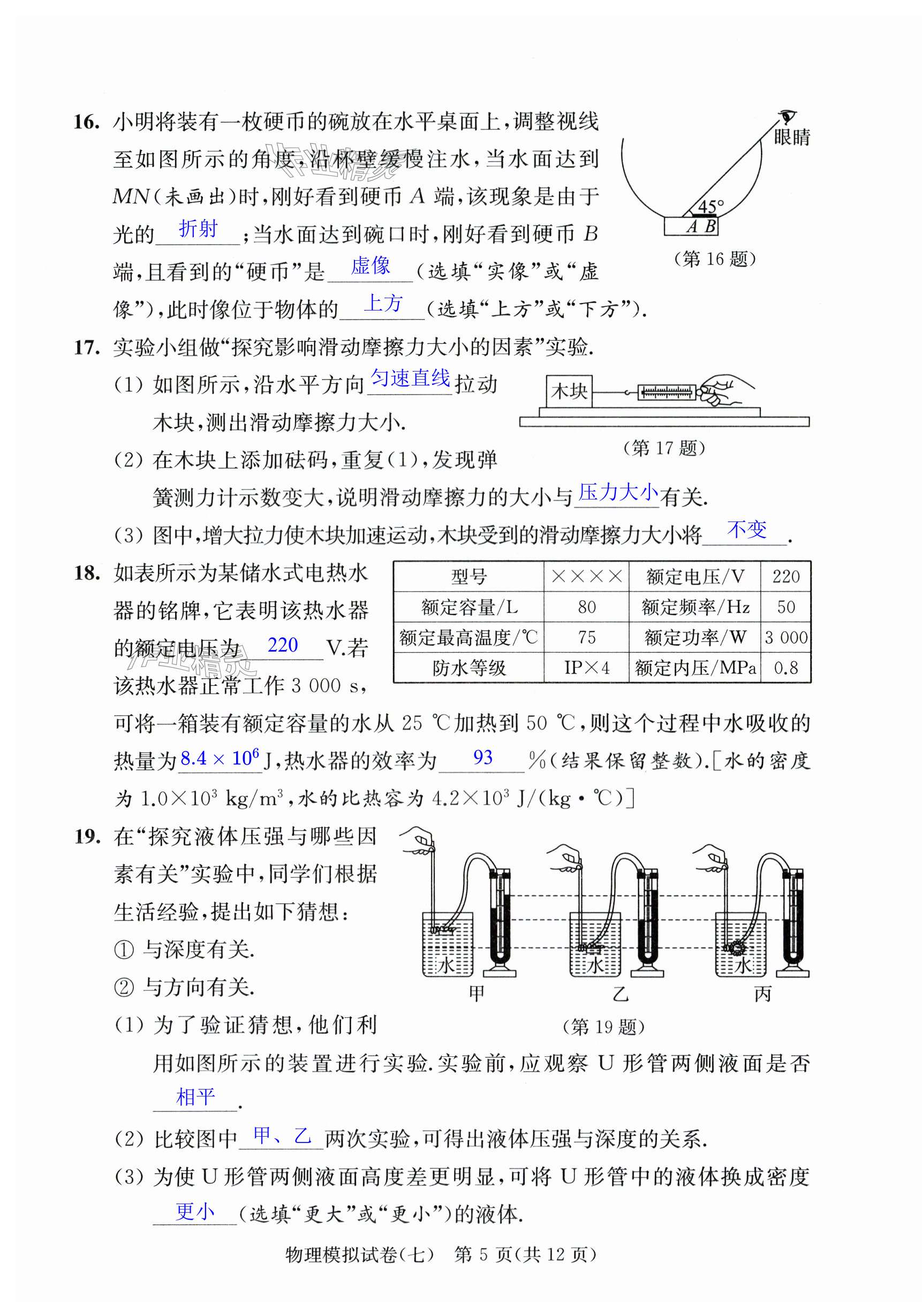 注:目前有些书本章节名称可能整理的还不是很完善,但都是按照顺序排列的,请同学们按照顺序仔细查找。练习册 2025年绿色成长互动空间决胜中考模拟卷物理 答案主要是用来给同学们做完题方便对答案用的,请勿直接抄袭。
