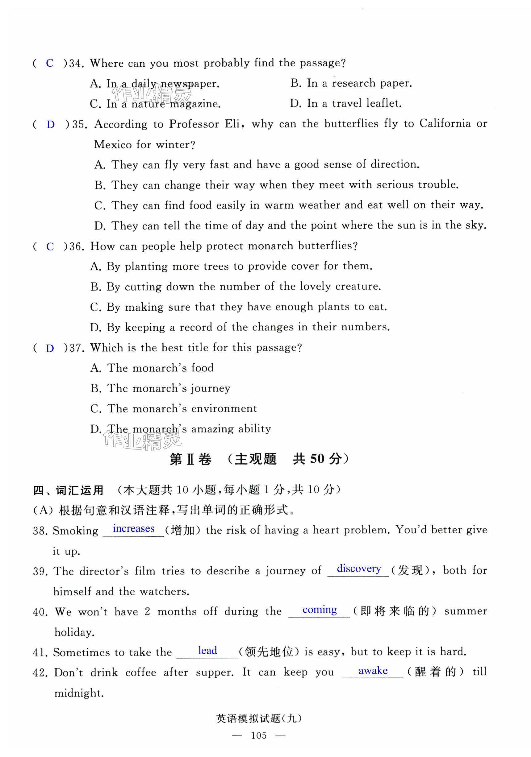 注:目前有些书本章节名称可能整理的还不是很完善,但都是按照顺序排列的,请同学们按照顺序仔细查找。练习册 2025年绿色成长互动空间决胜中考模拟卷英语 答案主要是用来给同学们做完题方便对答案用的,请勿直接抄袭。
