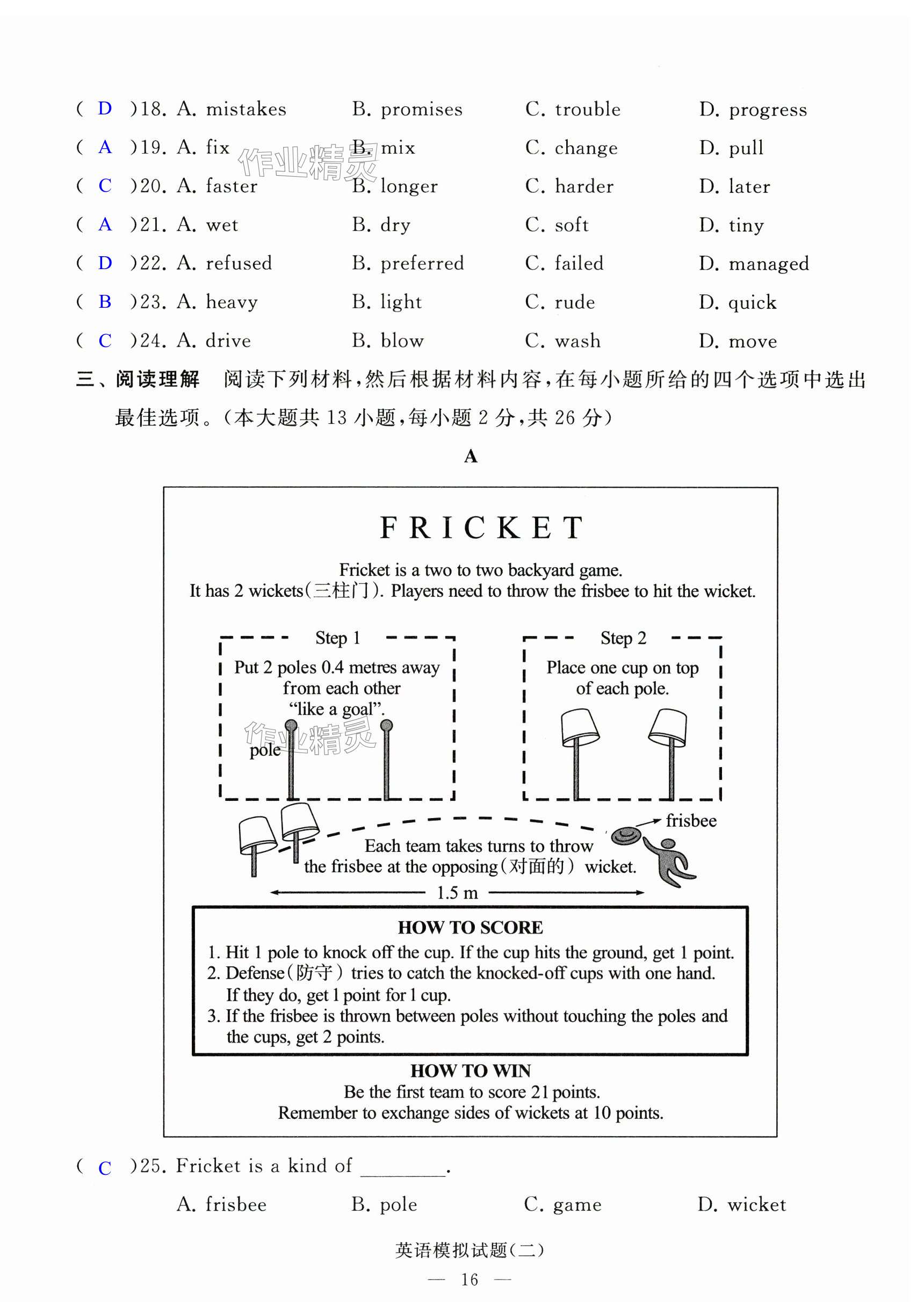 注:目前有些书本章节名称可能整理的还不是很完善,但都是按照顺序排列的,请同学们按照顺序仔细查找。练习册 2025年绿色成长互动空间决胜中考模拟卷英语 答案主要是用来给同学们做完题方便对答案用的,请勿直接抄袭。