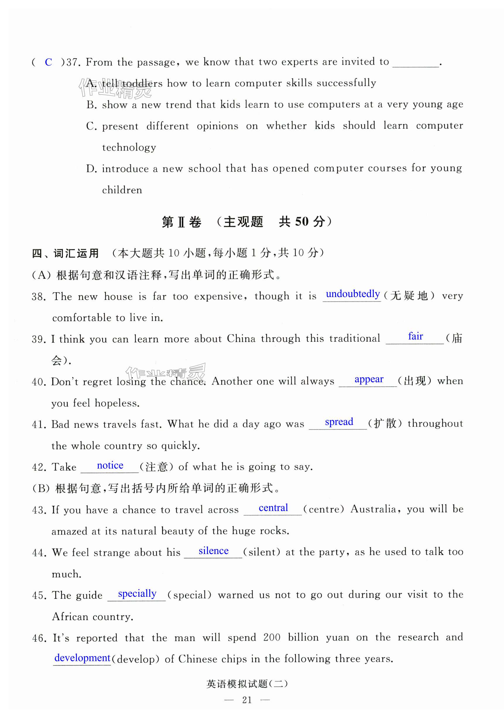 注:目前有些书本章节名称可能整理的还不是很完善,但都是按照顺序排列的,请同学们按照顺序仔细查找。练习册 2025年绿色成长互动空间决胜中考模拟卷英语 答案主要是用来给同学们做完题方便对答案用的,请勿直接抄袭。