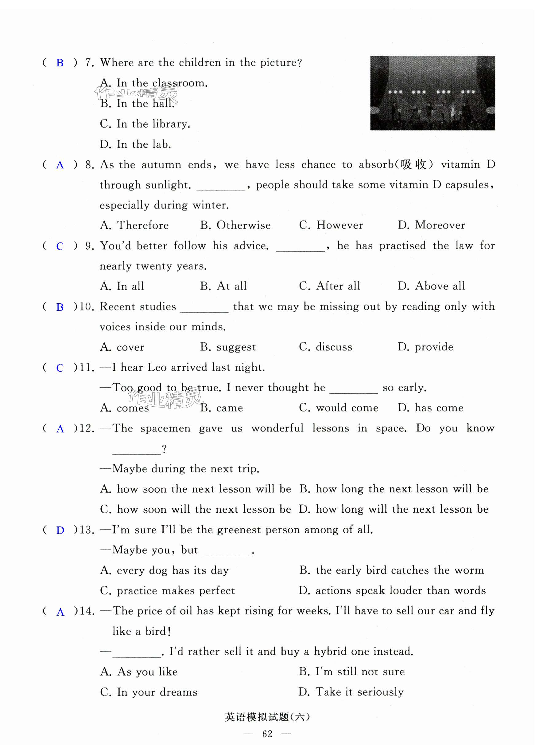 注:目前有些书本章节名称可能整理的还不是很完善,但都是按照顺序排列的,请同学们按照顺序仔细查找。练习册 2025年绿色成长互动空间决胜中考模拟卷英语 答案主要是用来给同学们做完题方便对答案用的,请勿直接抄袭。