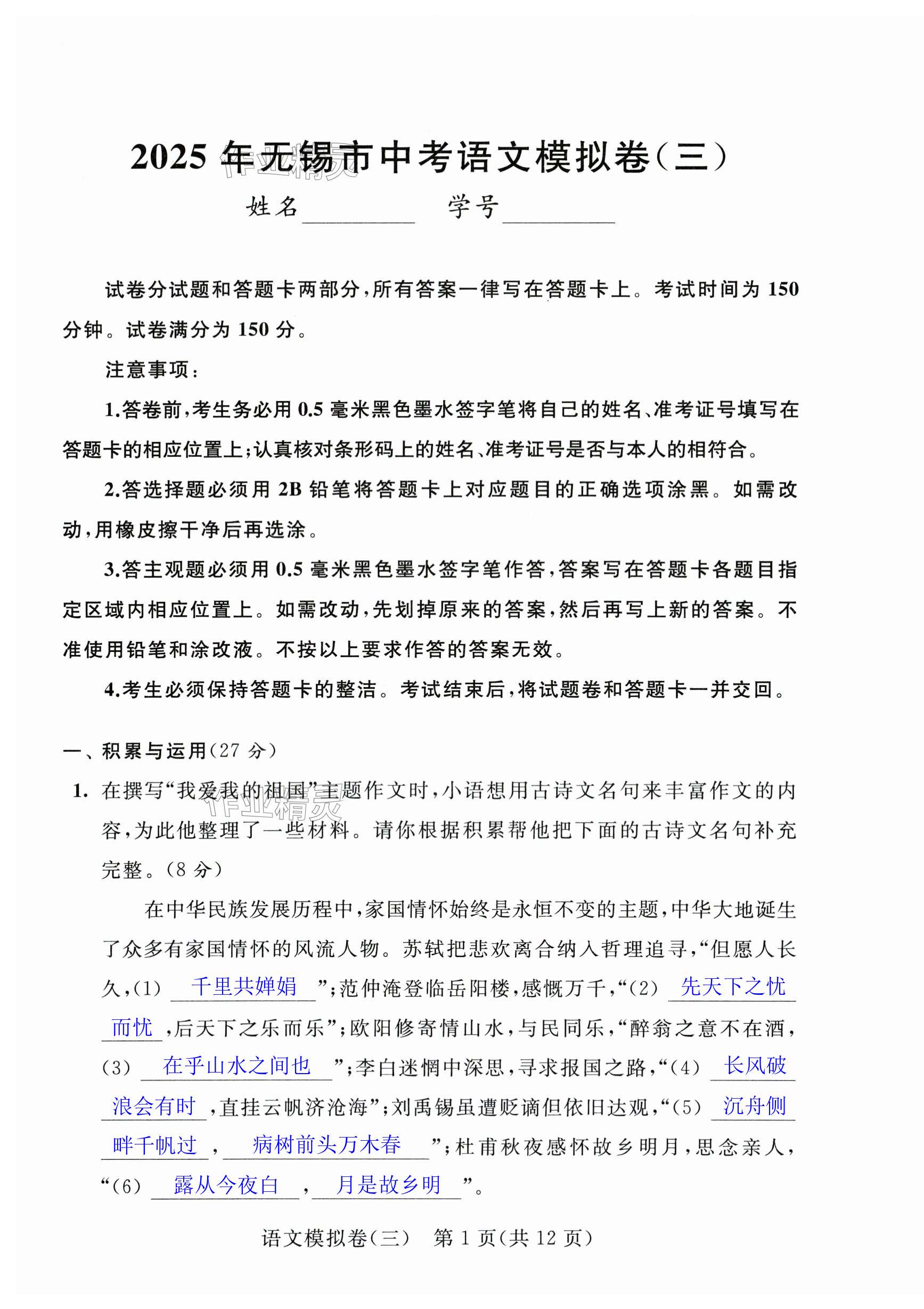 注:目前有些书本章节名称可能整理的还不是很完善,但都是按照顺序排列的,请同学们按照顺序仔细查找。练习册 2025年绿色成长互动空间决胜中考模拟卷语文 答案主要是用来给同学们做完题方便对答案用的,请勿直接抄袭。