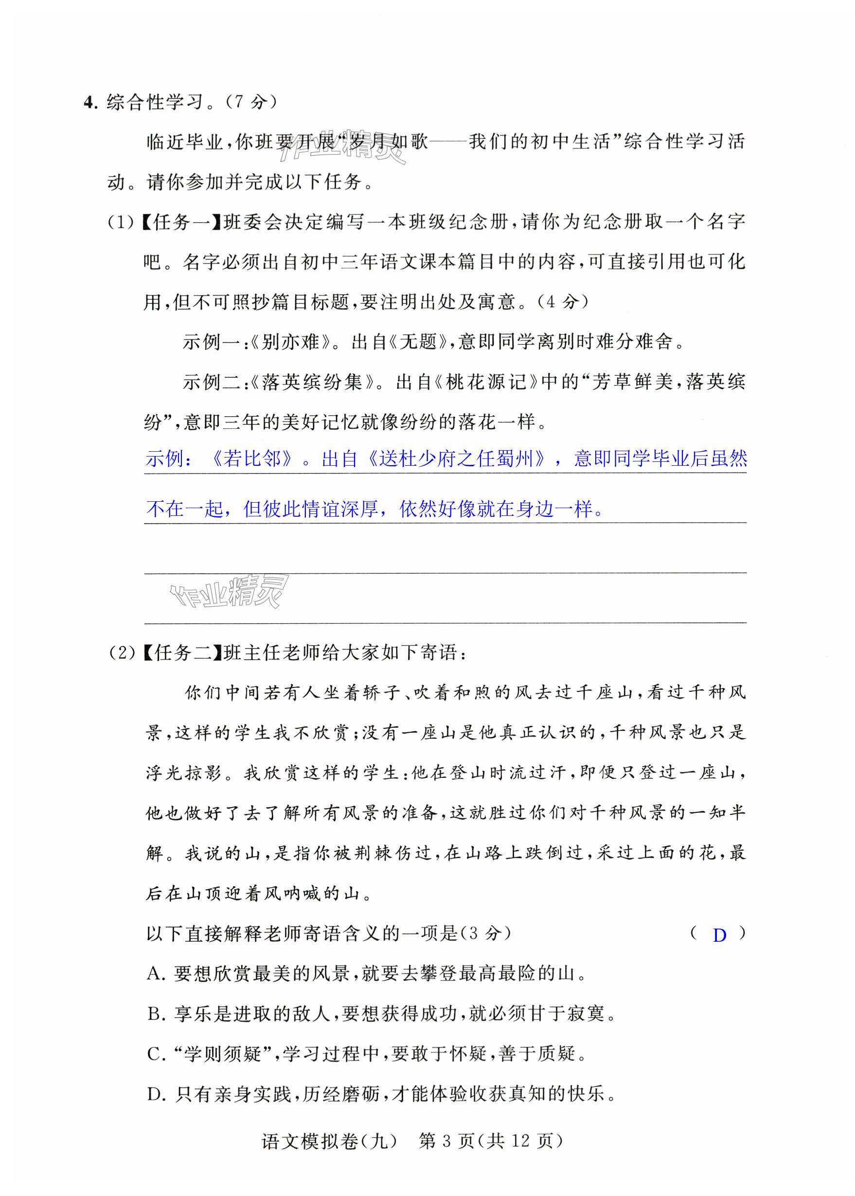 注:目前有些书本章节名称可能整理的还不是很完善,但都是按照顺序排列的,请同学们按照顺序仔细查找。练习册 2025年绿色成长互动空间决胜中考模拟卷语文 答案主要是用来给同学们做完题方便对答案用的,请勿直接抄袭。