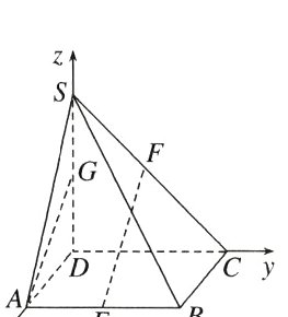 (1)如图,以$D$为原点,分别以$DA$,$DC$,$DS$所在直线为$x$轴,$y$轴,$z$轴,建立空间直角坐标系。